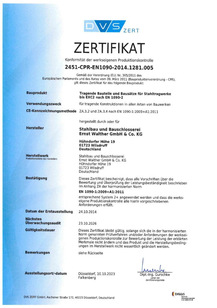 Seit 1986 fertigen 18 Mitarbeiter in Wilsdruff Stahlkonstruktionen nach EN 1090-2. Mit eigenem Konstruktionsbüro, zwei LKW-Ladekranen (13 m/19 m) und Kaltenbach-Blechbearbeitung realisieren wir Projekte – von Kopf- bis Flanschplatten. Zu unseren Referenzen zählt die Sanierung des Dresdner Hauptbahnhofs.